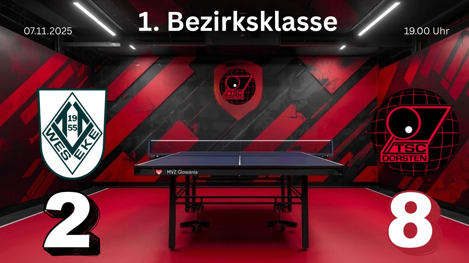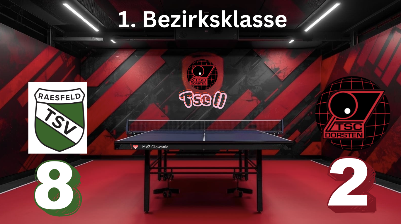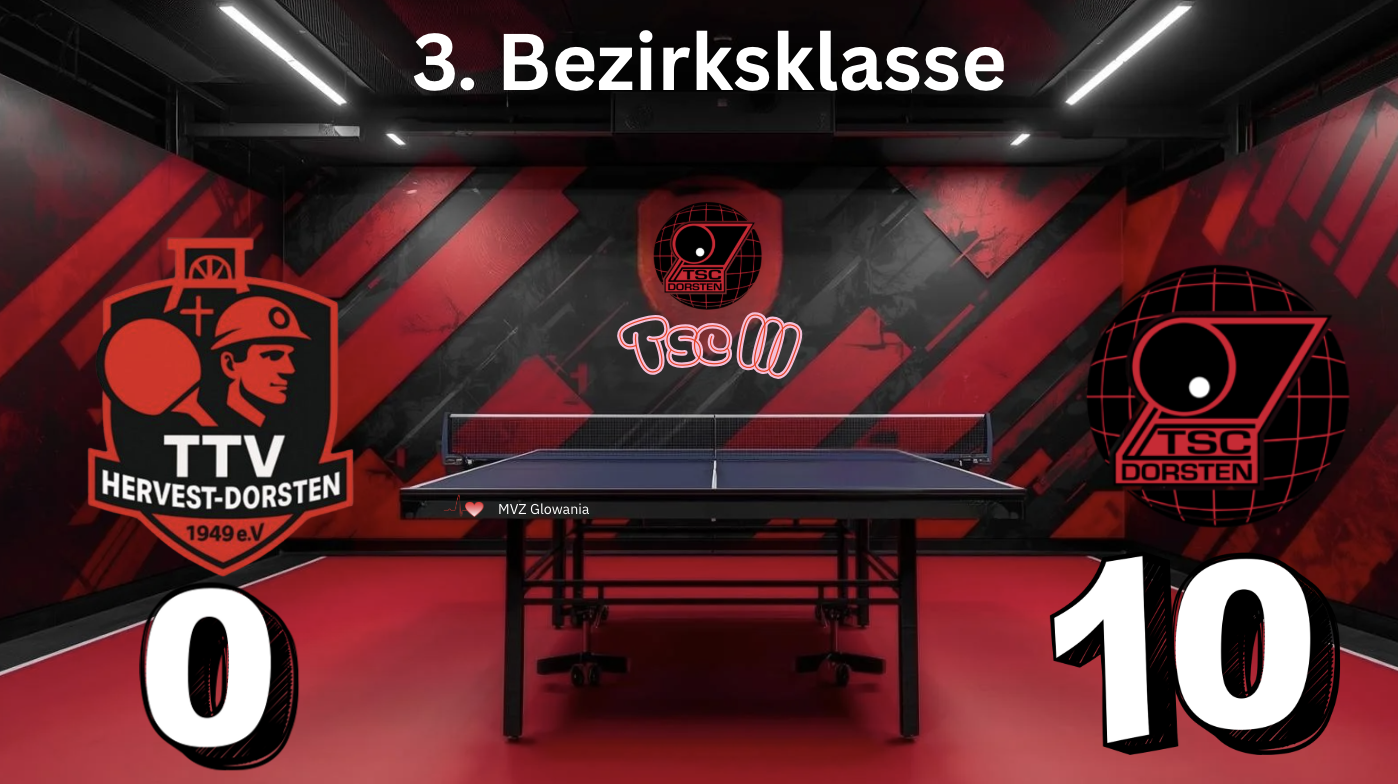 Mit einem beeindruckenden 10:0-Heimsieg gegen den TSV Raesfeld III, der bis zuletzt fair und engagiert kämpfte, übernimmt der TSC Dorsten II die Spitze der Tabelle. Am Freitagabend, dem 17.10.2025, zeigte das Team in der heimischen Halle eine starke und geschlossene Mannschaftsleistung. Bereits in den Doppeln setzten sich van der Weiden/Heinisch sowie Hilfert/Wesolowski souverän durch. Auch in den Einzeln behielt Dorsten die Oberhand, obwohl Raesfeld immer wieder mit guten Ballwechseln und großem Einsatz dagegenhielt.